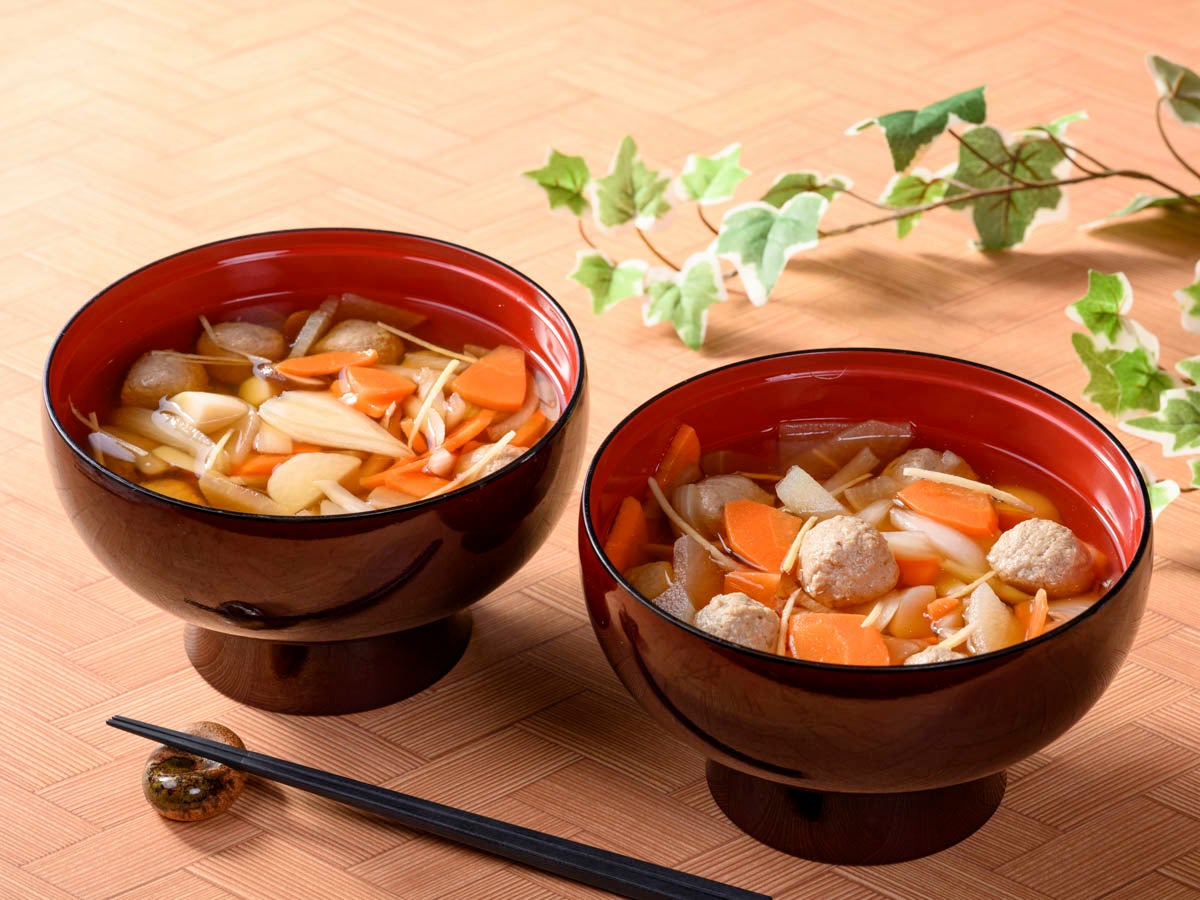 (右)芋の旨みと香ばしいだしの味わいが広がる"ふるさとの味わい 芋煮スープ"【山形・天童限定】