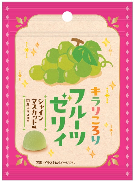 「キラリころり フルーツゼリィ みかん味」は、静岡県三ヶ日みかんのピューレを使用し、みかんをまるごとほおばったようなジューシーな味わいのゼリーです。「キラリころり フルーツゼリィ シャインマスカット味」は国産のシャインマスカットの絞汁残潰を使用したフルーツエキスを使用し、シャインマスカットの瑞々しさを感じられます。