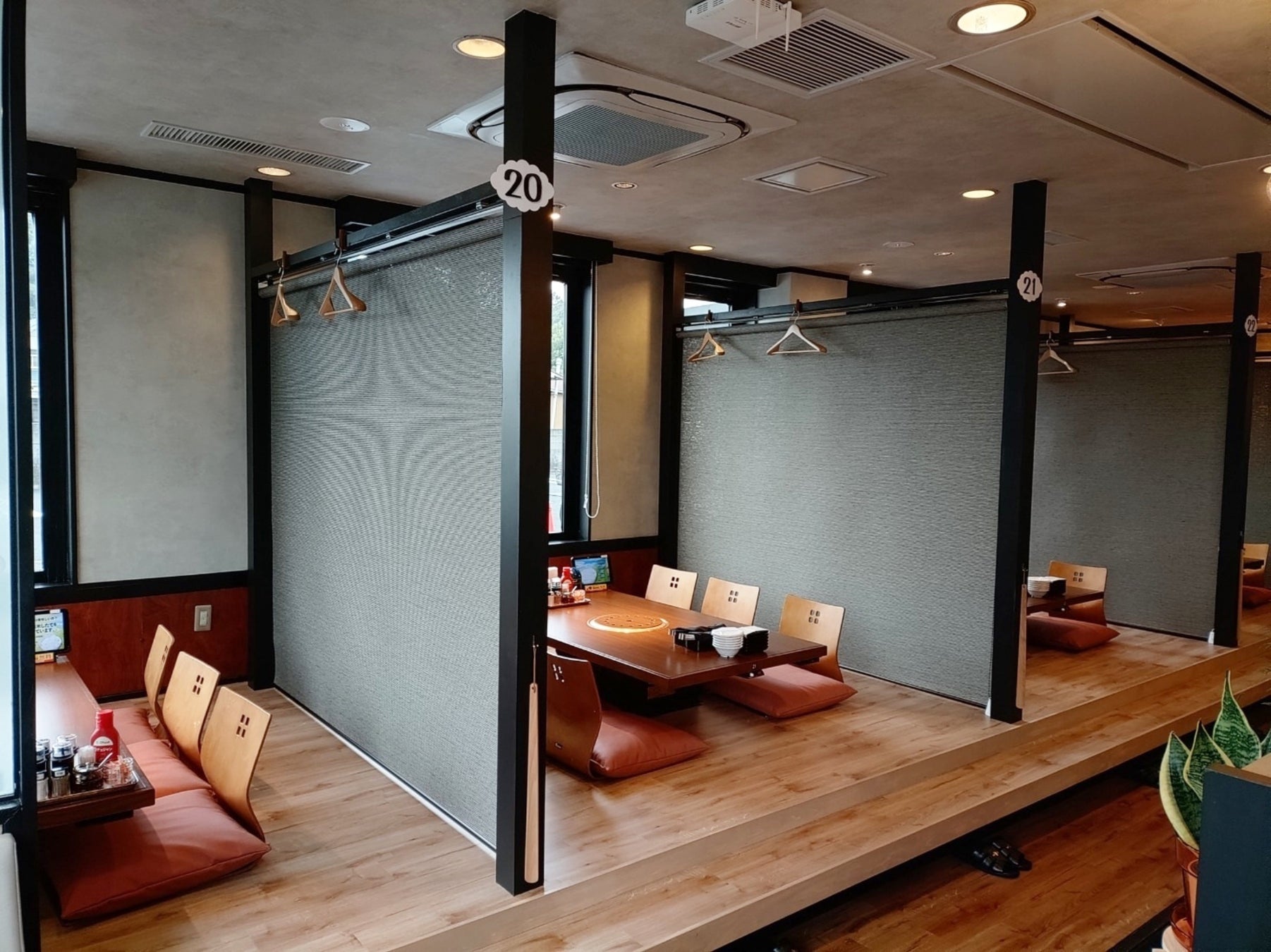 お座敷に仕切りが追加され個室風でプライベート感の溢れる空間に!仕切りを上げれば広いお席に。大人数の会食もお任せください!(最大112名様)