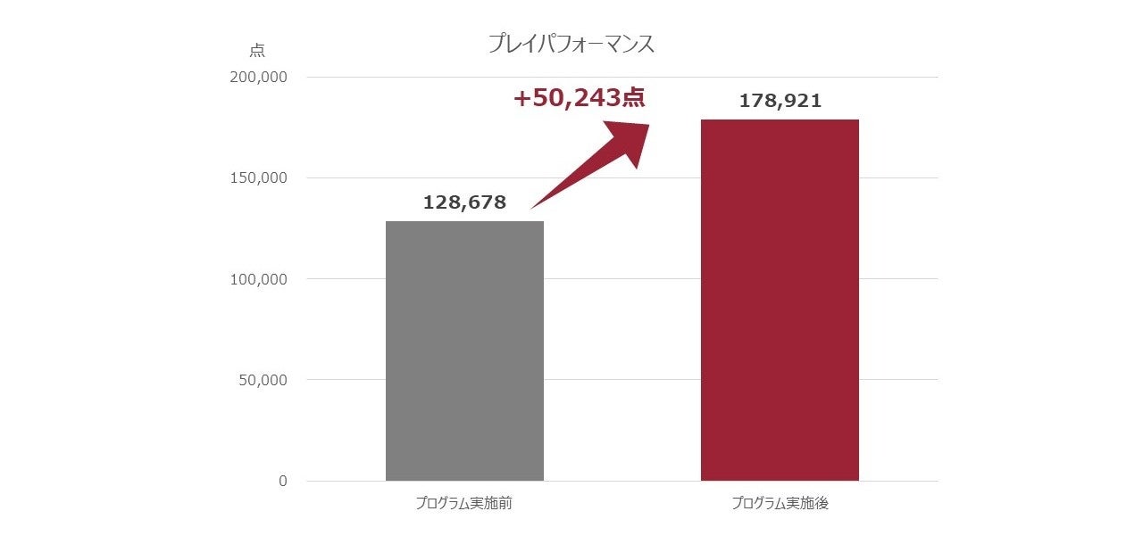 睡眠改善により、シューティングゲームでの射撃の正確性を示す指標となるエイムスコア※が平均50,243点上昇しプレイパフォーマンスも向上しました。