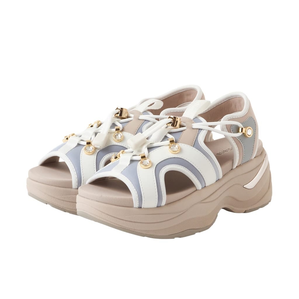 毎年大人気のドローコードサンダルが今年も登場!フットベッドはふかふかと弾み、包み込むようなホールド感のある、やみつきになる心地よさ♪ストッパーや紐通しのビジューが華やかさを添え、踵のメタルパーツでクラス感もプラス、カジュアルながらも洗練されたデザイン。ベーシックカラーにくすみブルーを効かせた大人かわいいカラーは今季の新色です。
