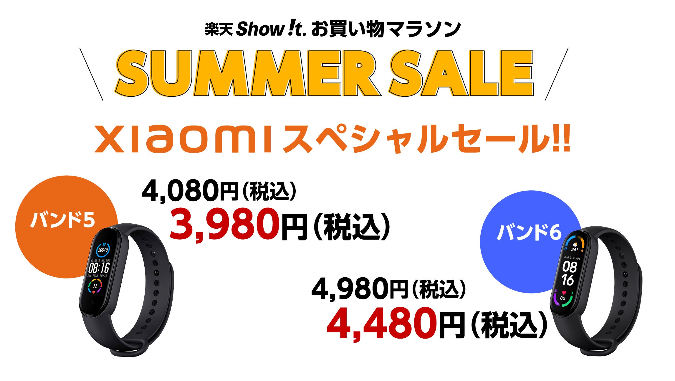 楽天市場「Show it」サマーセール!XiaomiのMi Bband5とMi Bband6を、お買い得価格で販売。さらに、楽天お買い物マラソンでポイント10倍プレゼントを実施。