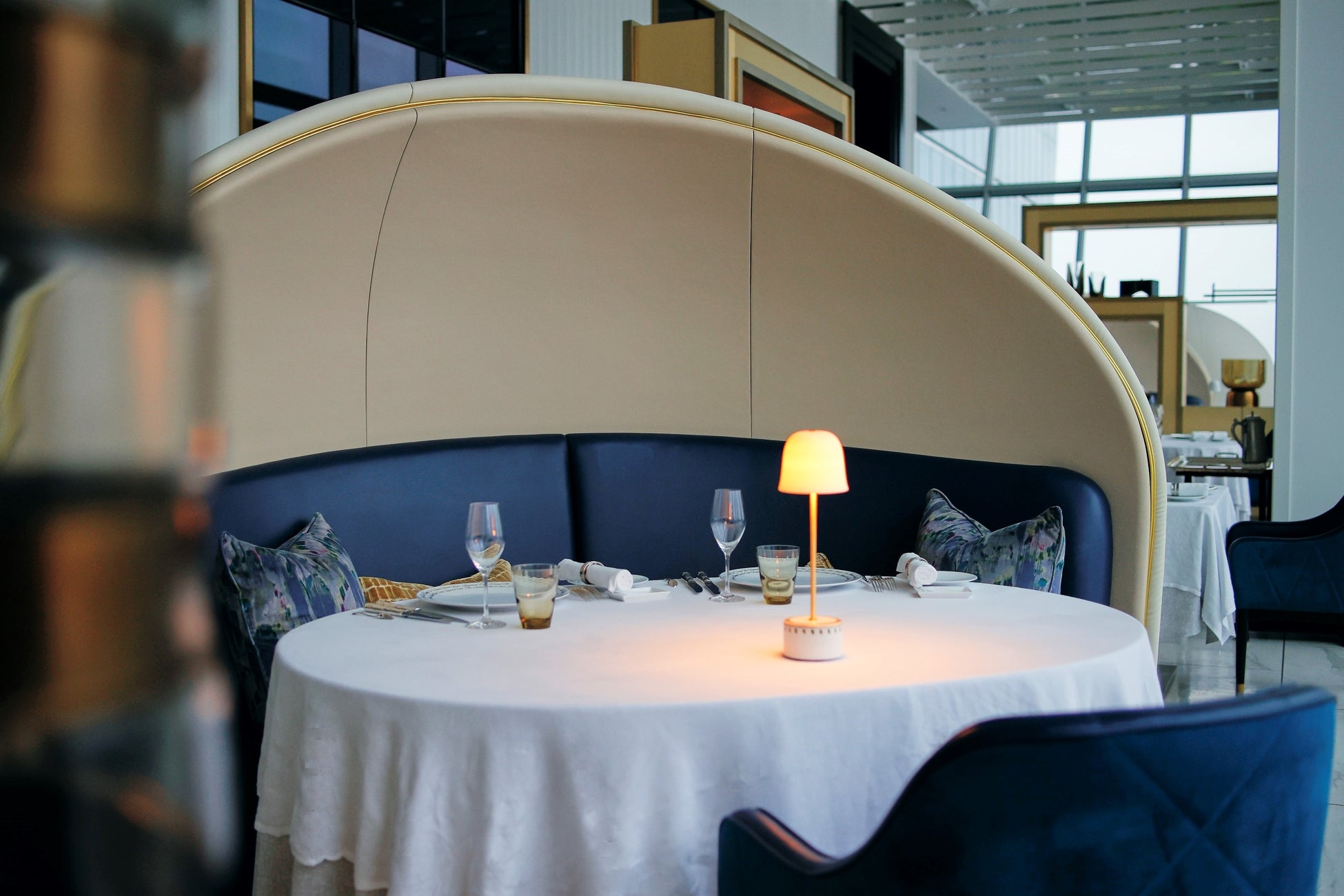 「5th Anniversary Dinner Chimera」に、オリジナルベアと、アニバーサリープレートをセットにした1日2組様限定のコースでは、窓側のシェル型ソファ席を確約でご用意いたします。