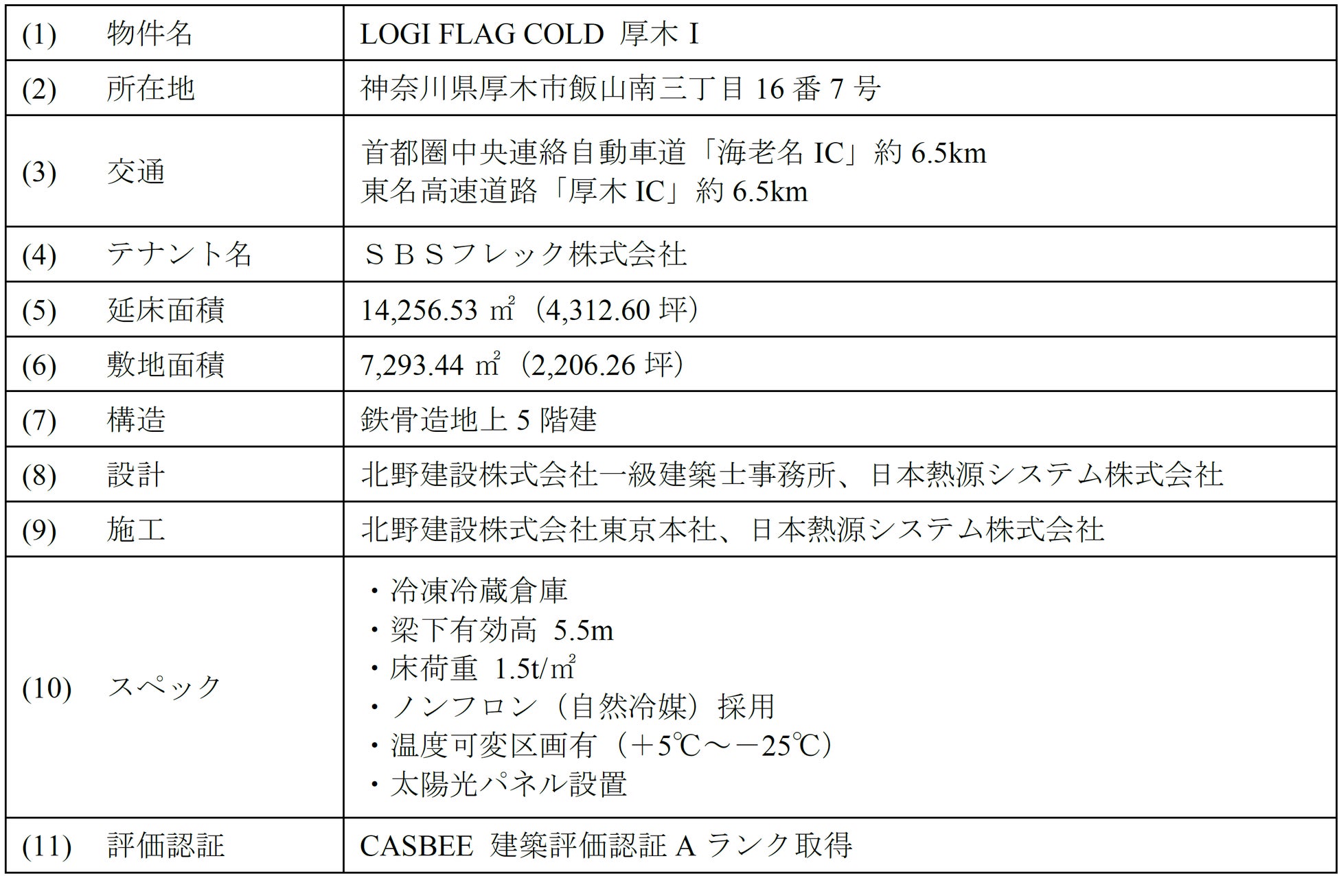 【神奈川県厚木市】賃貸型冷凍冷蔵倉庫『LOGI FLAG COLD 厚木Ⅰ』竣工に関するお知らせ