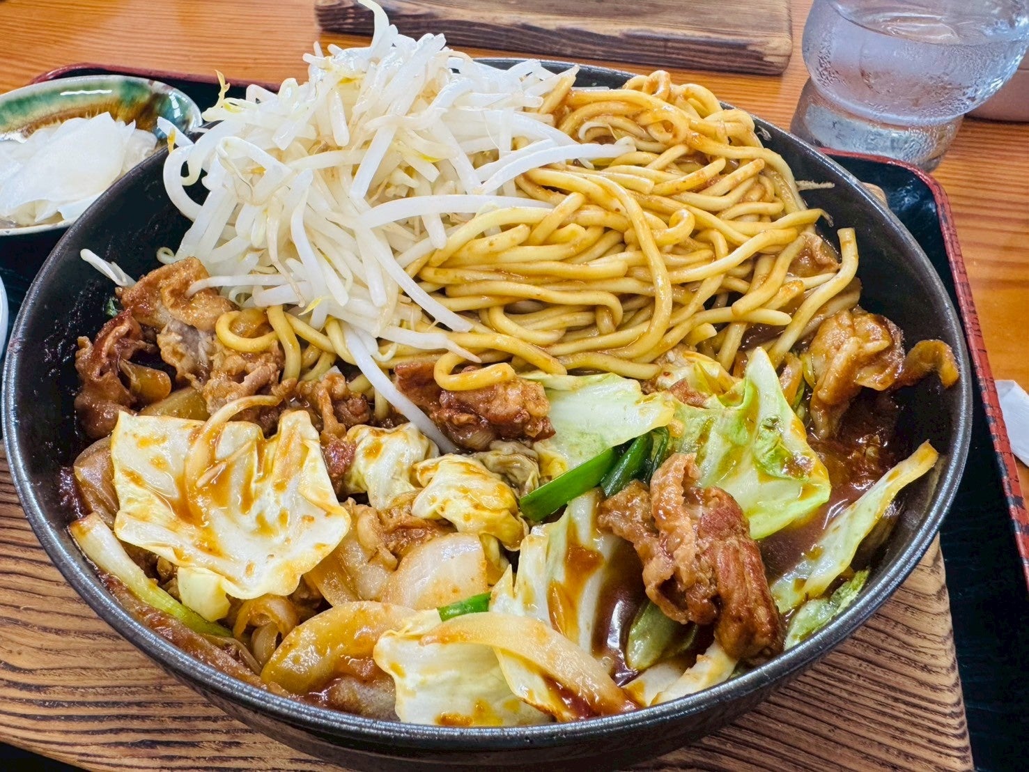 地元で愛される特製みそだれを使った「みそホルモンのちゃんぽん麺入り」で昼食