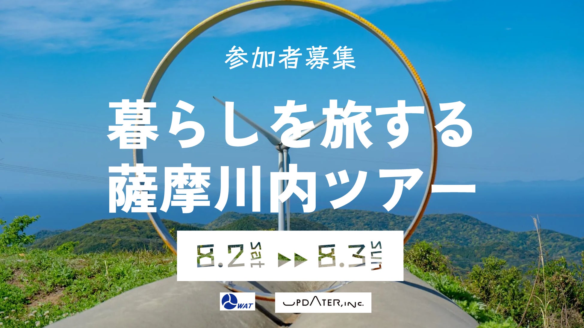 社会課題をオモシロく解決する企業、株式会社UPDATER(所在地:東京都世田谷区、代表取締役:大石英司)は、鹿児島県薩摩川内市の地域新電力「W電力」を運営する株式会社ワット(所在地:鹿児島県薩摩川内市、代表取締役:永田善三)とともに、『旅で見直す地域とサステナブル』をテーマにした1泊2日のツアーを開催します。