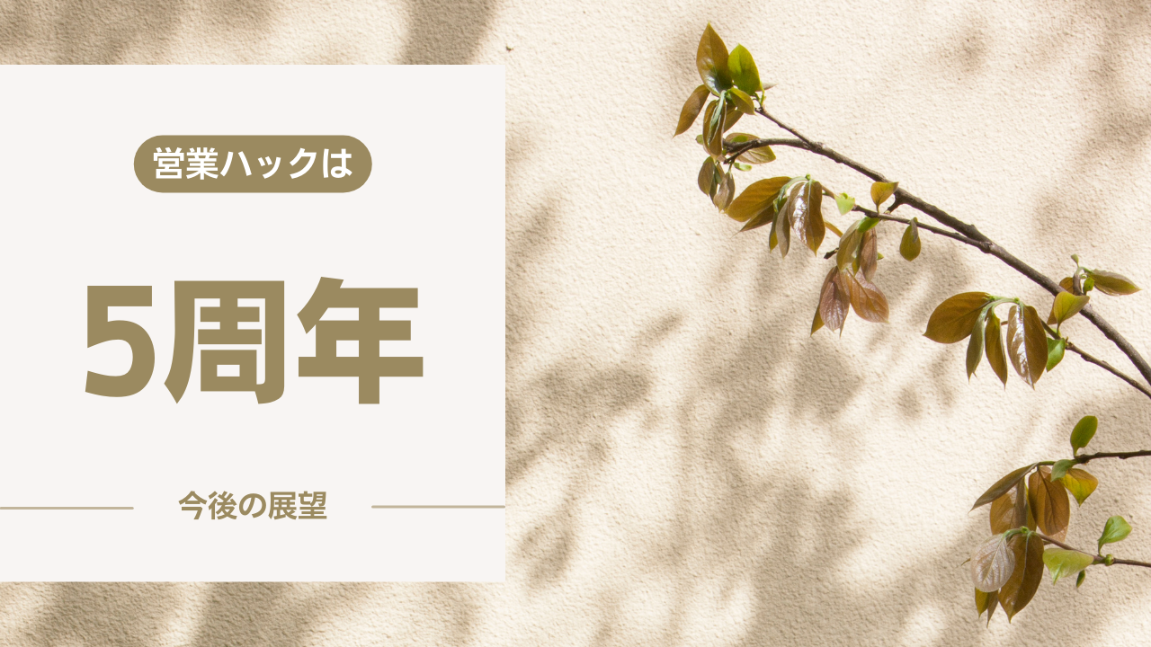 株式会社営業ハック(本社:東京都港区、代表取締役社長:笹田裕嗣)は、本日2023年4月13日をもちまして設立5周年を迎えることができました。ご指導・ご支援いただいた関係者のみなさま、誠にありがとうございます。
