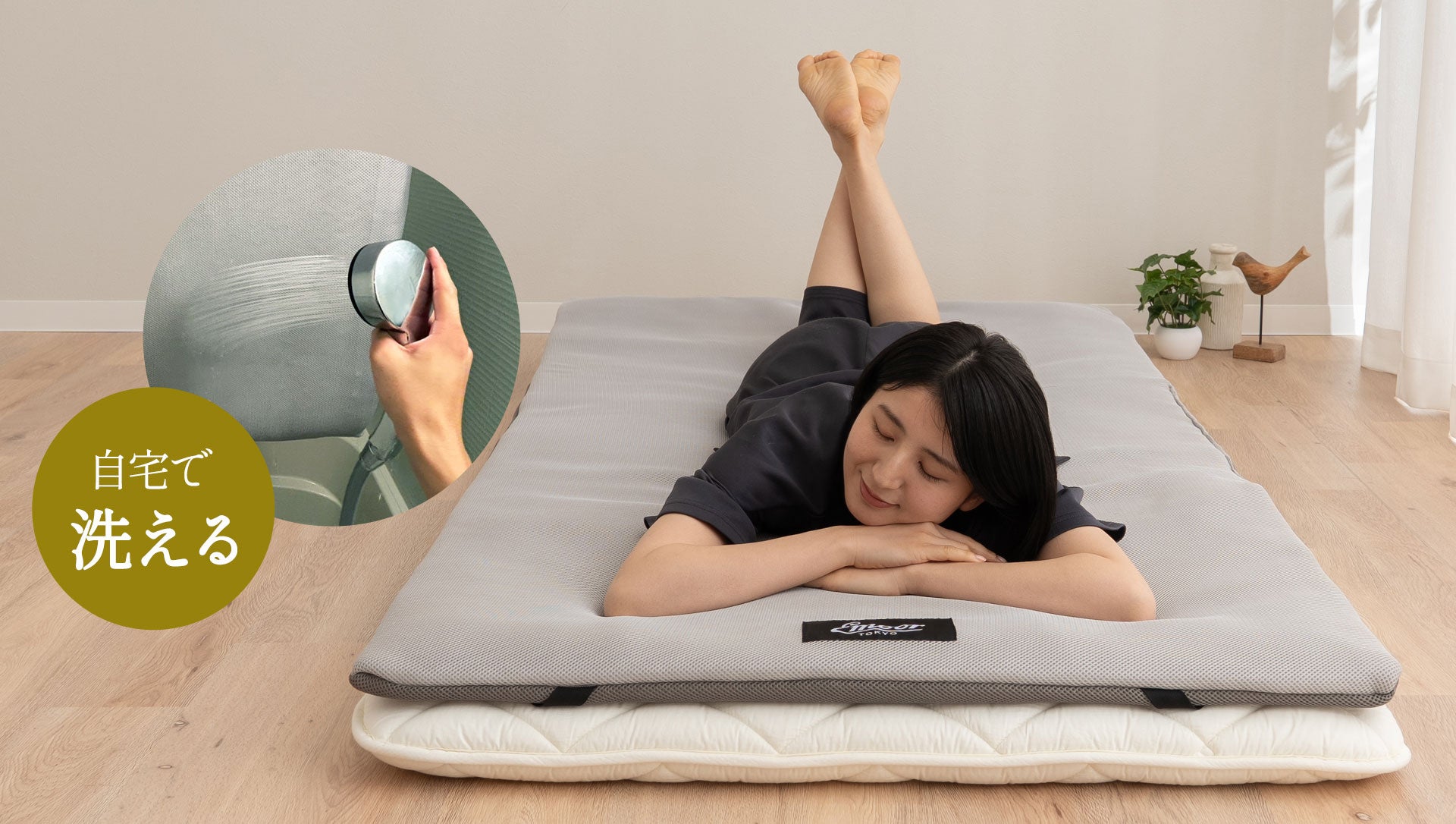 シーズンを問わず丸洗いが可能なため、汗や汚れを気にせずいつでも清潔。衛生面を重視する方や、家族での共用にも安心です。
