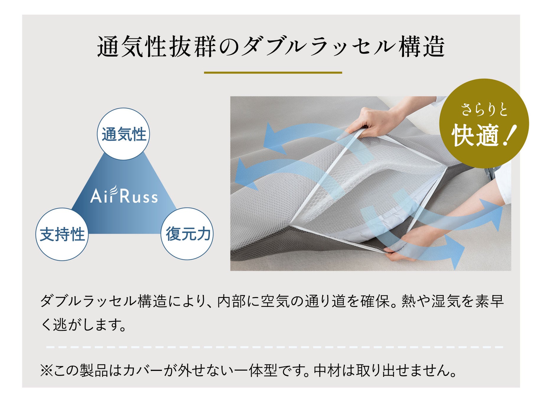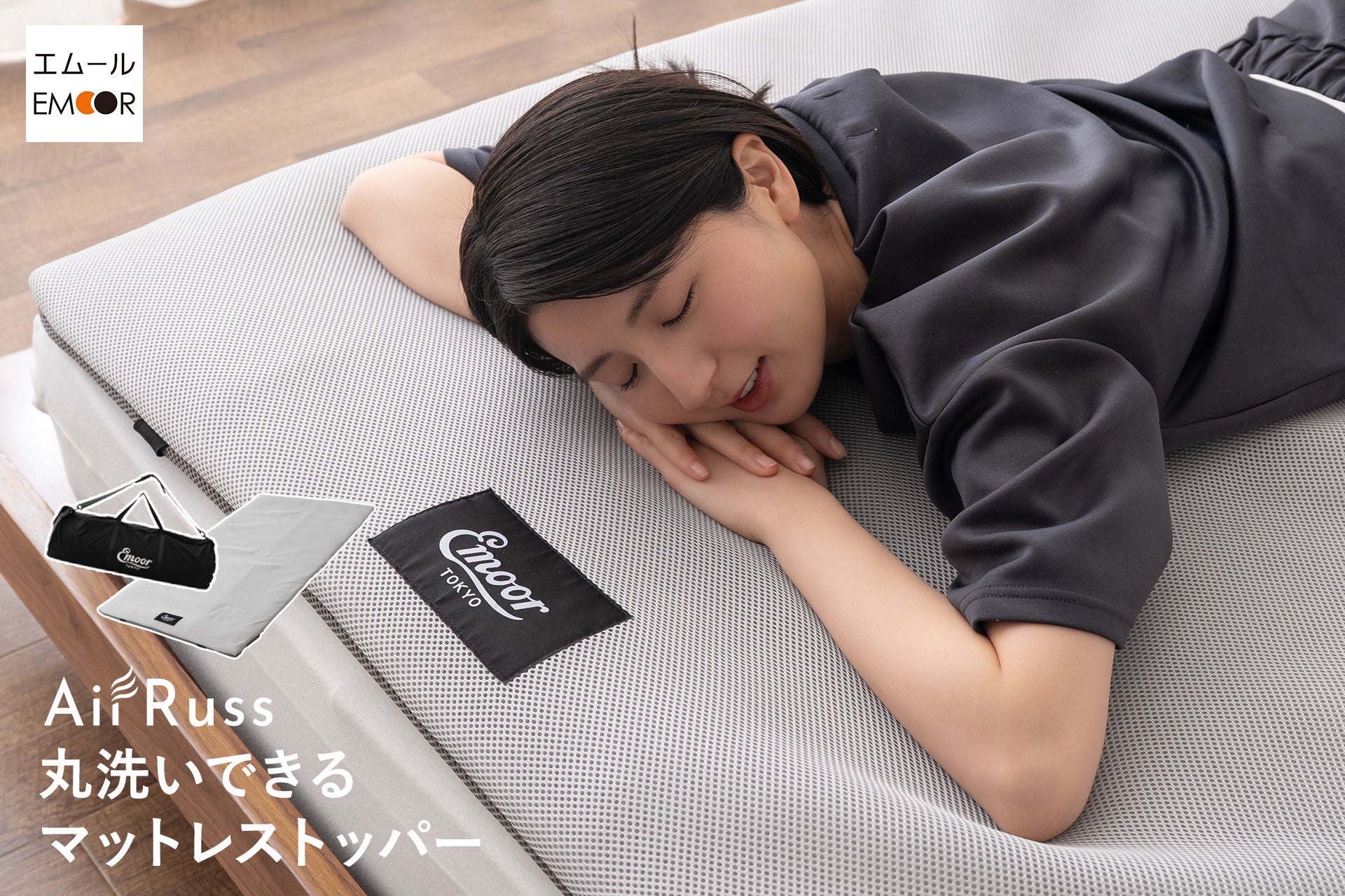 お持ちの寝具に重ねるだけで睡眠環境改善!寝心地&通気性が格段にアップするAirRussマットレストッパーが新登場!もちろん、丸洗いできます。さらにドライヤーで形状が復元します。