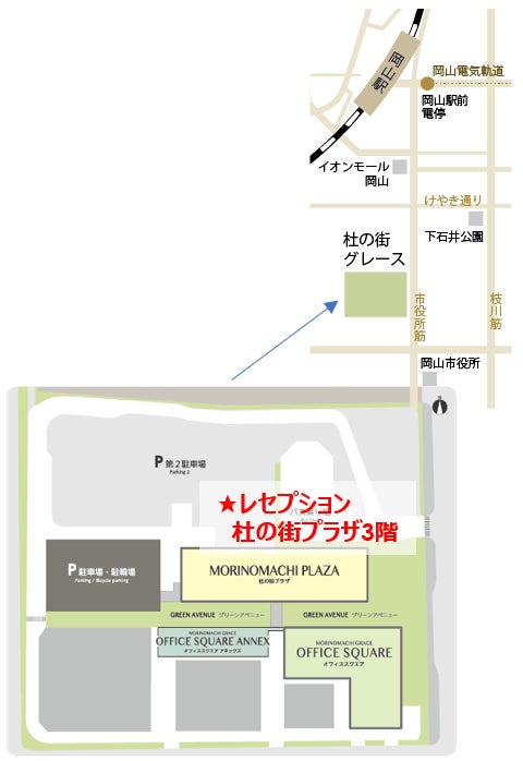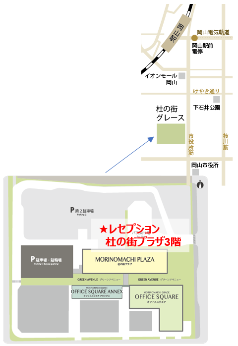 所在地:岡山県岡山市北区下石井二丁目10番8号 杜の街グレース 杜の街プラザ 3階4階(レセプション3階)