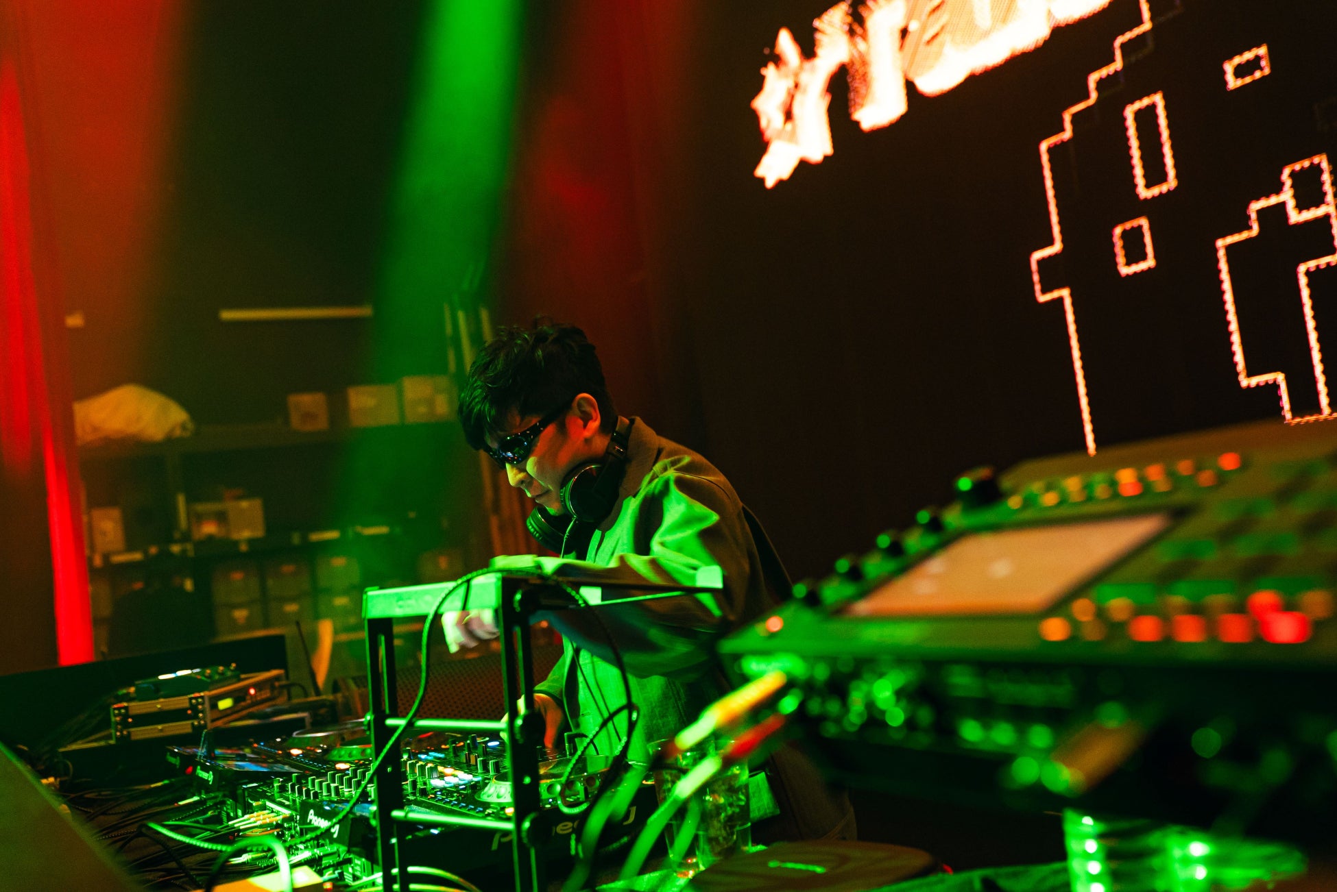 三原が静かに笛を取り出すと、バックには神楽囃子の奏者たちが控え、美しく生演奏が響き渡る。笛の高音がクラブの空間を震わせると、4体の大蛇が召喚され、ダンサーたちと対峙する。EDMのビートと神楽囃子が絡み合い、新たな音楽体験が生み出された瞬間だった。クラブの会場で伝統的な神楽囃子の生演奏が響き渡るのは、史上初の試みだろう。