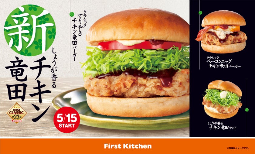 ウェンディーズ・ジャパン株式会社及び、ファーストキッチン株式会社 (所在地:東京都新宿区、代表取締役:紫関修) では、5月15日(木)からファーストキッチン(競馬場店を除く)にて、長年、お客様より親しまれてきたファーストキッチンの人気商品「チキン竜田サンド」を、より和の旨味を楽しむことのできる仕立てにリニューアルいたします。新生・チキン竜田は、塩しょうがでしっかりと下味をつけ、三度の加熱をおこなうことで鶏本来の豊かな味わいが堪能できる、和の旨味を追求した逸品です。ザクザクとした衣と、あふれる旨みをお楽しみください。また、ファーストキッチンでは軽くお食事がしたい方に向けて、お手頃価格のバーガー「はみでるフィッシュサンド」も同時発売し、ラインナップを強化します。さらに、5月8日(木)~5月21日(水)の期間中、Xフォロー&リポストキャンペーンで新商品の無料券プレゼントキャンペーンを実施します。ぜひご参加ください。