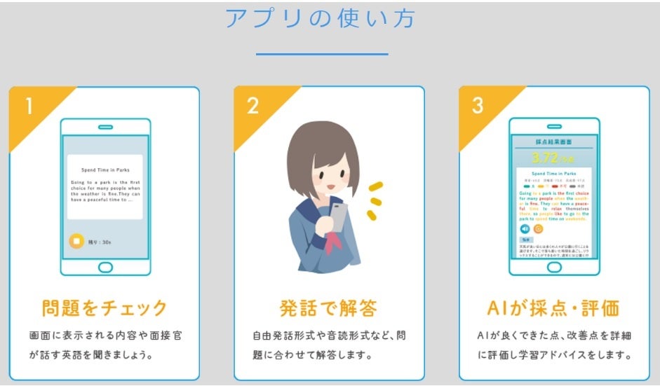 AIの完全サポートによる4技能の習得:聞く、話す、読む、書くの4つの英語スキルを、AI技術を駆使して効率的に学びます。