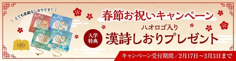 株式会社イーオン(本社:東京都新宿区、代表取締役社長:重野卓、以下「イーオン」)が運営するハオ中国語アカデミーは、2026年2月17日(火)~3月3日(火)の期間、ハオ中国語アカデミーの生徒の皆様、そして新たに学びをスタートされる新入学者の皆様に「漢詩しおり」をプレゼントいたします。