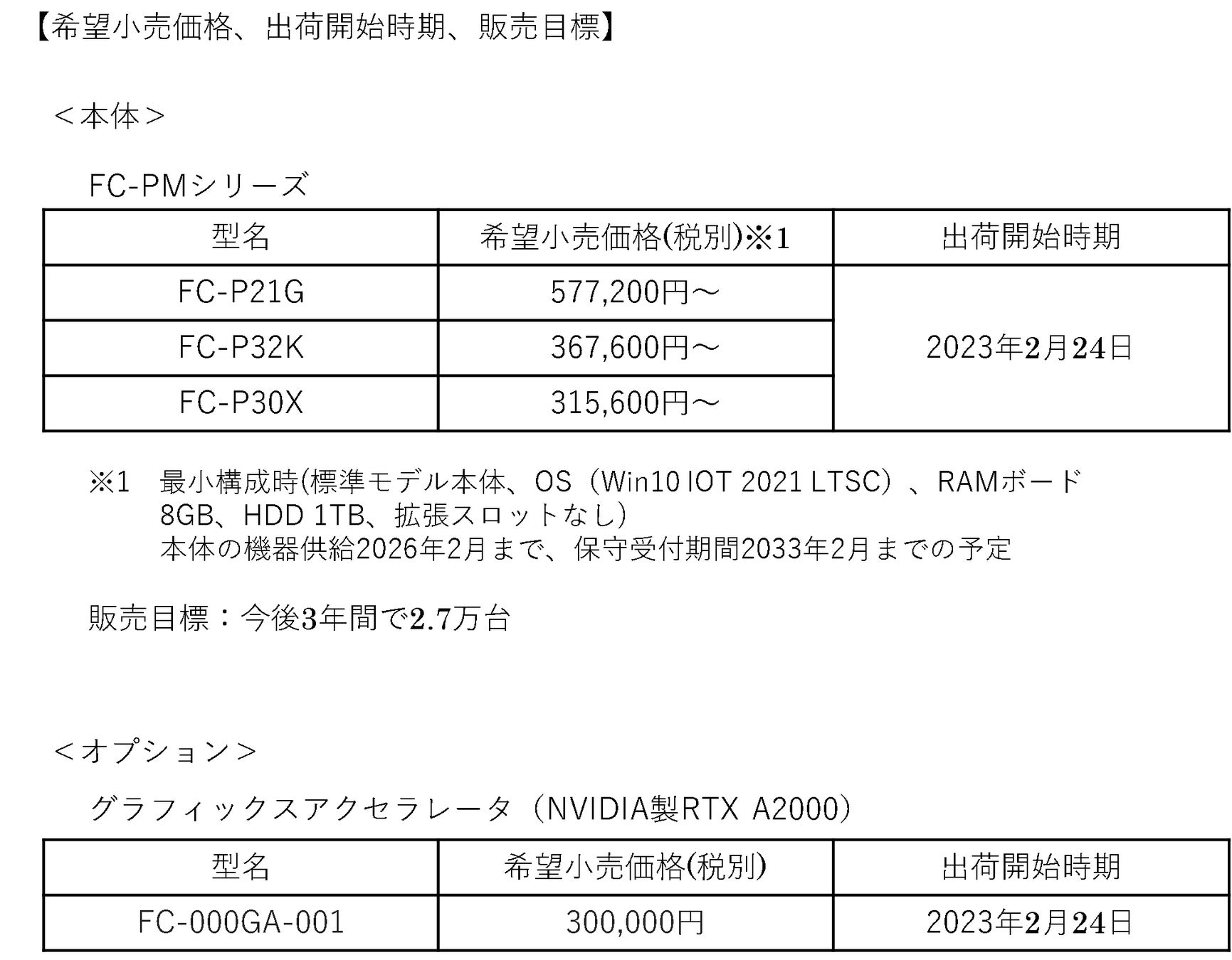新たに「FC-PMシリーズ」のオプションとして供給期間を2029年12月まで、保守受付期間を2032年12月までと長期供給・保守に対応したグラフィックスアクセラレータとして「NVIDIA RTX™A2000」を用意します。