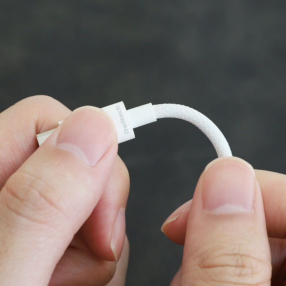 ナイロン素材でありながら絡みにくいブレイデッド(編み込み)ケーブルです。折り曲げ試験1万回の耐久性をもち、普段使いに最適な製品です。