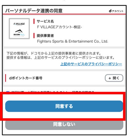 5.F VILLAGEアカウントとdアカウントの連携完了