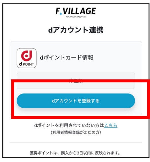 F VILLAGEアカウントを新規作成した上で、dアカウント連携に進んでください。