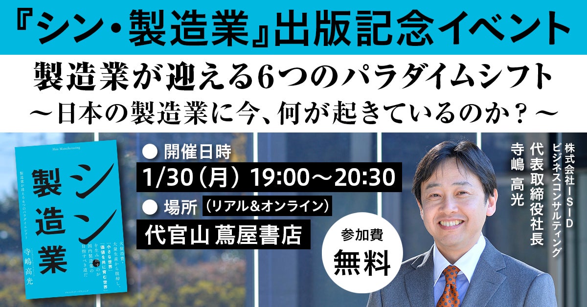 申込者数60名突破!話題書『シン・製造業』出版記念イベントが1月30日(月)、代官山蔦屋書店でリアル・オンライン同時開催!