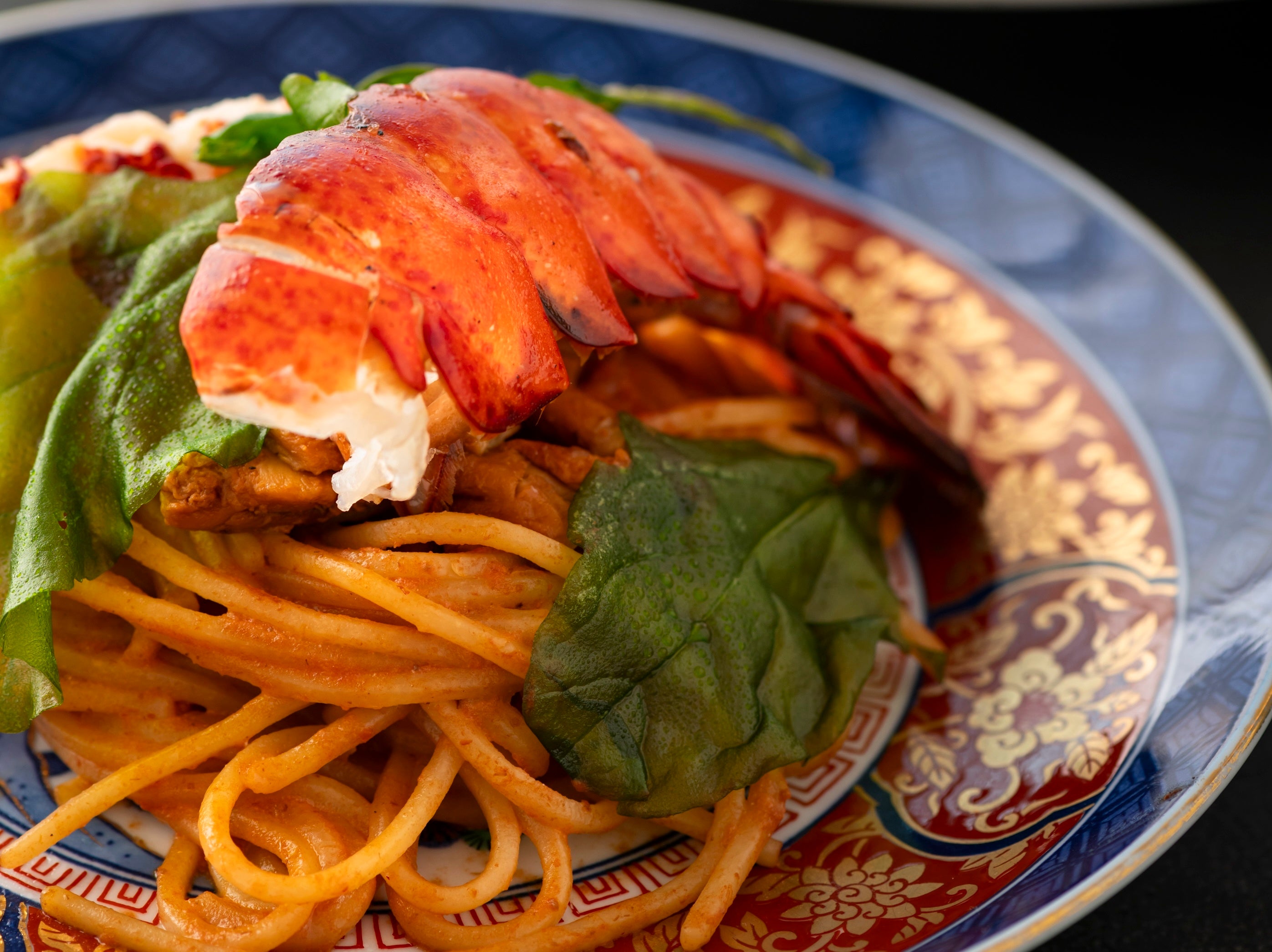 <パスタ>キタッラ ビスクとマスカルポーネソース ジロール茸とルッコラフリット