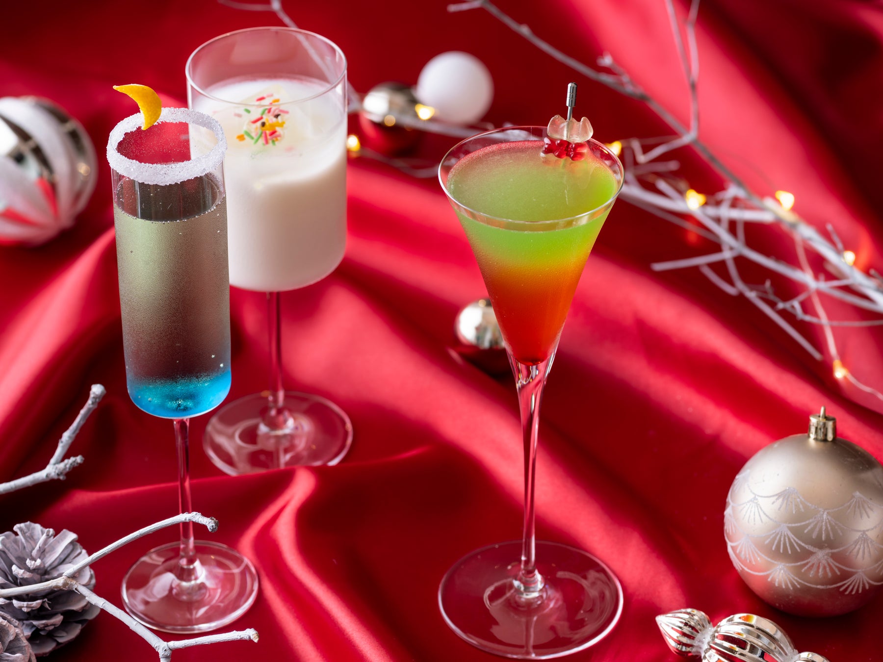 クリスマス映画をテーマにした3種の限定カクテルが登場。色彩や香りの違いを楽しめる華やかな一杯が、みなとみらいの夜景とともにフェスティブな時間を演出します。