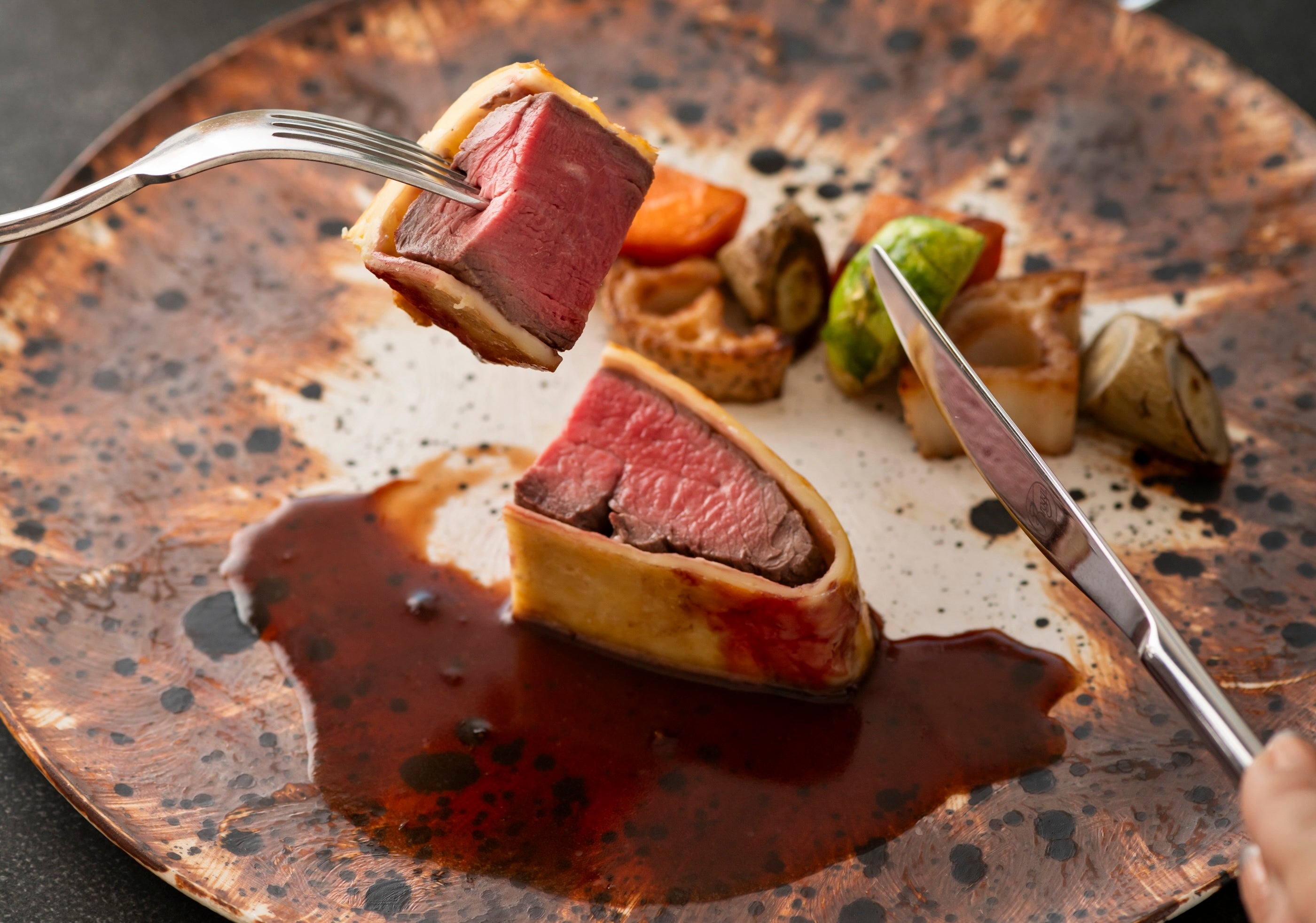 <セコンド>牛フィレ肉のパイ包み焼き フォアグラのキャラメリゼと根菜添え ポルトソース