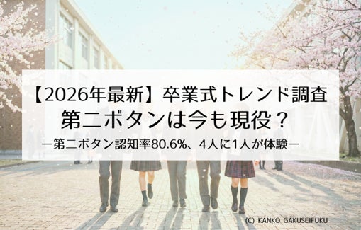 菅公学生服株式会社 (本社:岡山市北区駅元町、代表取締役社長:尾﨑 茂 以下:カンコー学生服)は、全国の中高生1,200人を対象に「2026年最新の卒業式事情」に関する調査を実施いたしました。 SNSでのコミュニケーションが主流の令和において、かつての定番「第二ボタン」の認知度は8割を超え、特に中学生においては3割が実際に贈り合うなど、卒業式の「第二ボタン」は、今なお中高生の間で“現役の文化”であることが明らかになりました。