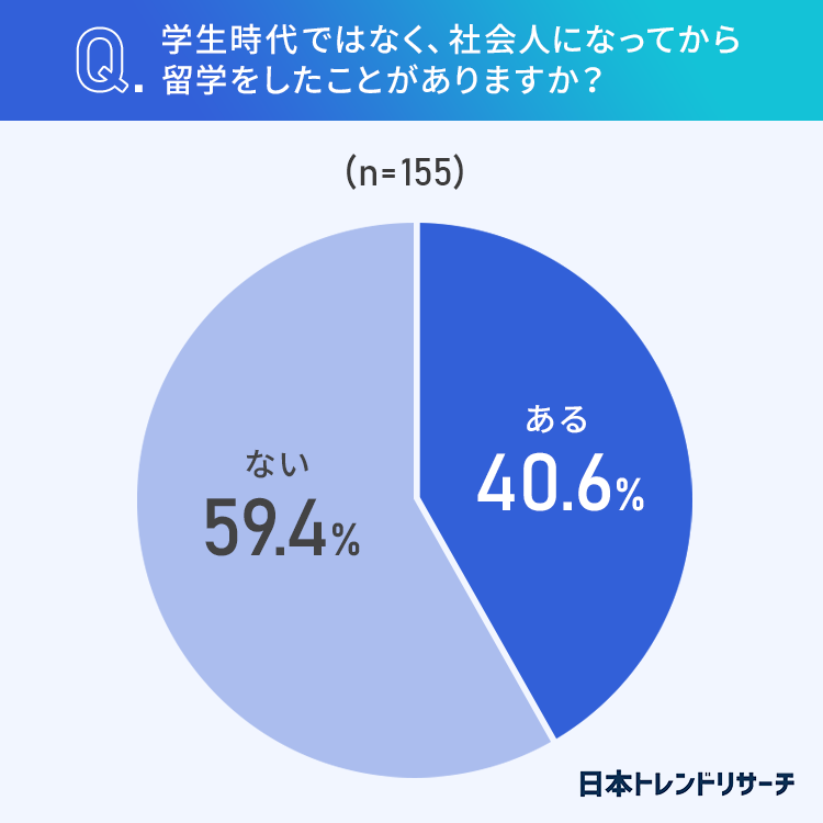 ■40.6%が、社会人になってから留学をしたことが「ある」