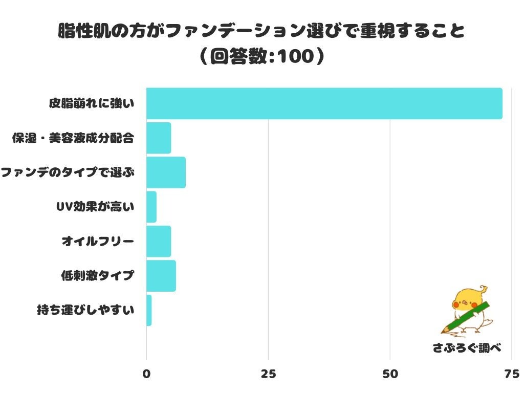 脂性肌の方は皮脂のせいでファンデが崩れやすく、テカってしまいがちなのでそれを防止できるようなファンデーションを選ぶようにしているようです。