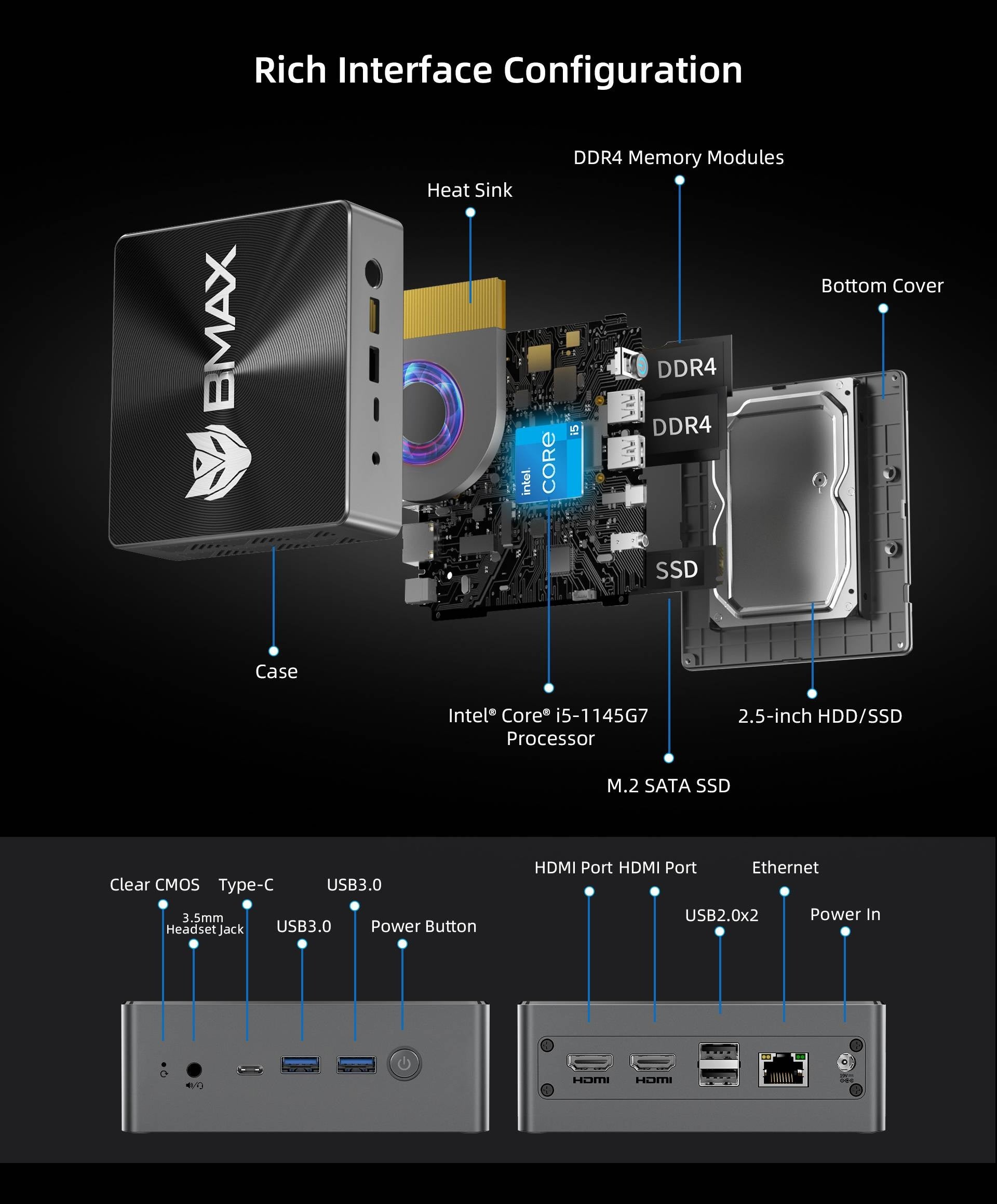 BMAX B7PRO ミニPC:20台限定販売! Core i5-1145G7 16GB DDR4 1TB たったの5.4万円!!