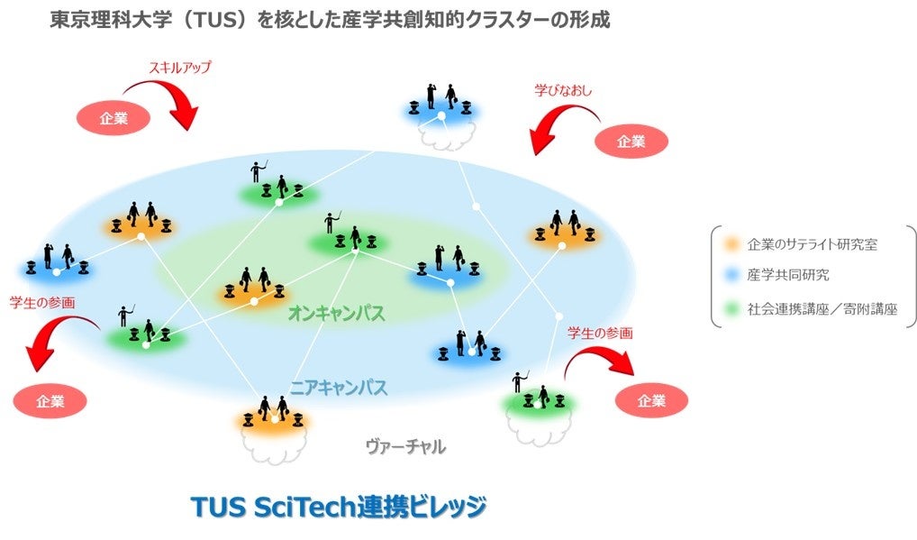 本構想は、昨年4月に新設した司令塔組織であるTUS SciTech共創推進本部のもと、本学教育・研究・産学連携・学生支援・国際化等に係るあらゆる機能を結集した上で、民間企業のニーズに基づき、共同研究から民間企業のサテライトラボの学内設置までの多様な連携プロジェクトの組成を図るものです。