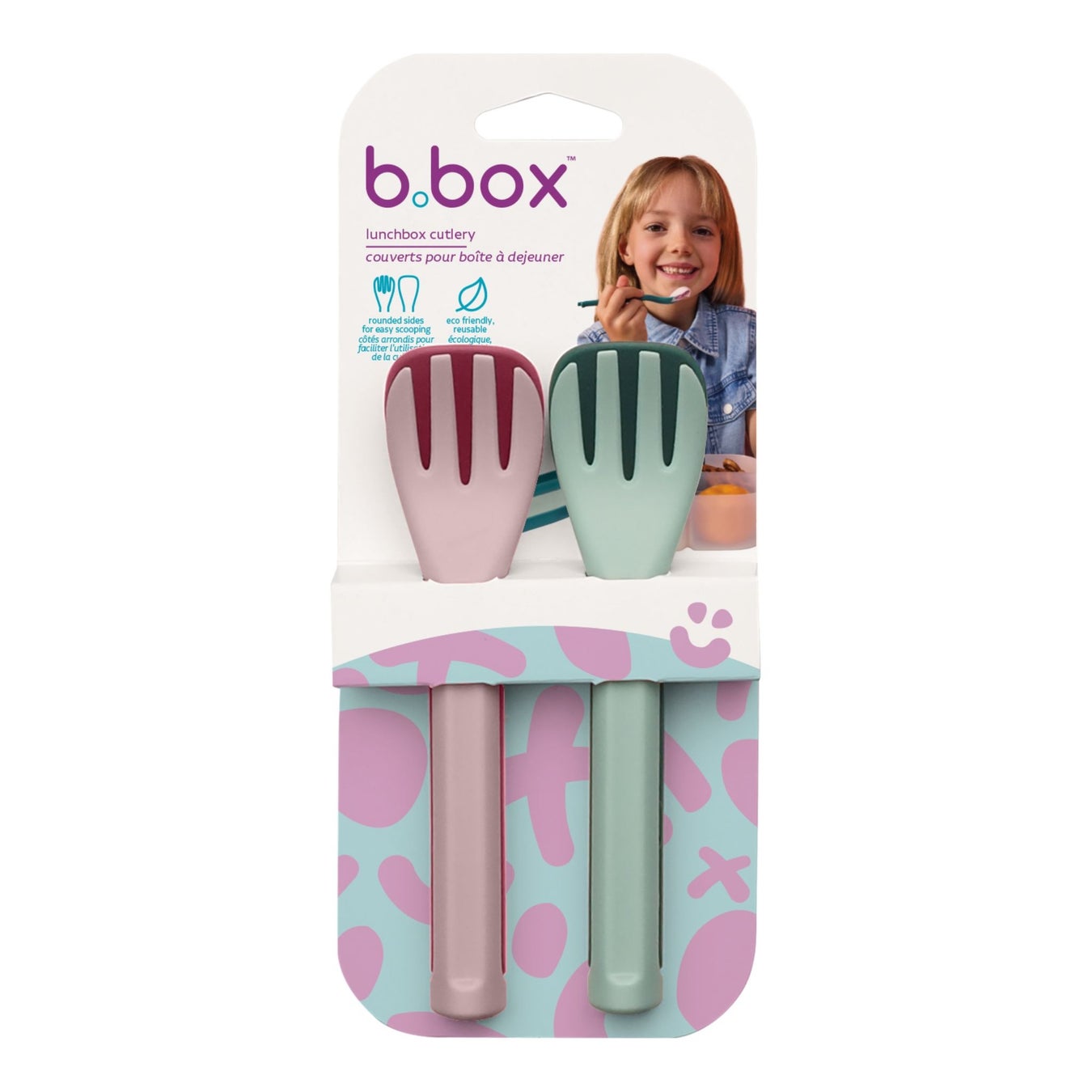 「ランチボックスカトラリー」は、b.boxのランチボックス、ミニランチボックス、シリコントレーにぴったりフィットする専用設計のフォーク&スプーンセットです。コンパクトに収まるサイズ感で持ち運びやすく、遠足やピクニック、通園・通学など、さまざまなシーンで活躍します。