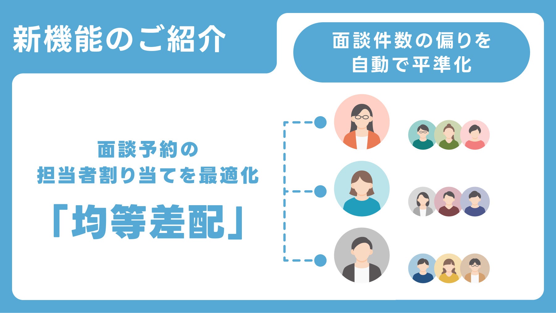 こうした運用上の調整負荷を軽減し、面談予約の自動化をより安定して活用できるようにするため、「均等差配」機能を開発しました。