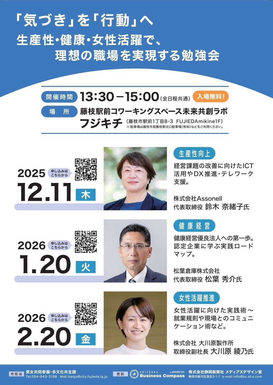 対 象:藤枝市働きやすい職場環境認定事業所のほか、藤枝市内及び近郊の経営層、管理職、