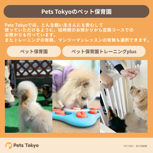 Pets Tokyoが運営するペット保育園は、日中の“お預かり”と“トレーニング・運動”を兼ね備えたサービス。