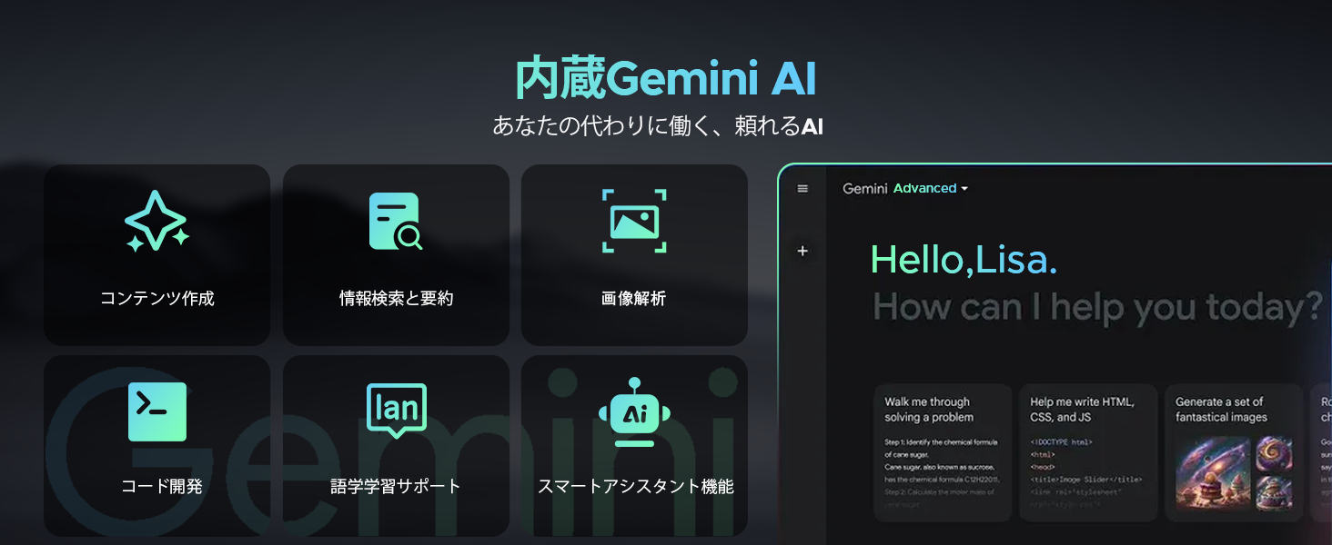 検索・文章作成・翻訳・日常サポートなど、AIを活用したスマートな操作が可能です。
