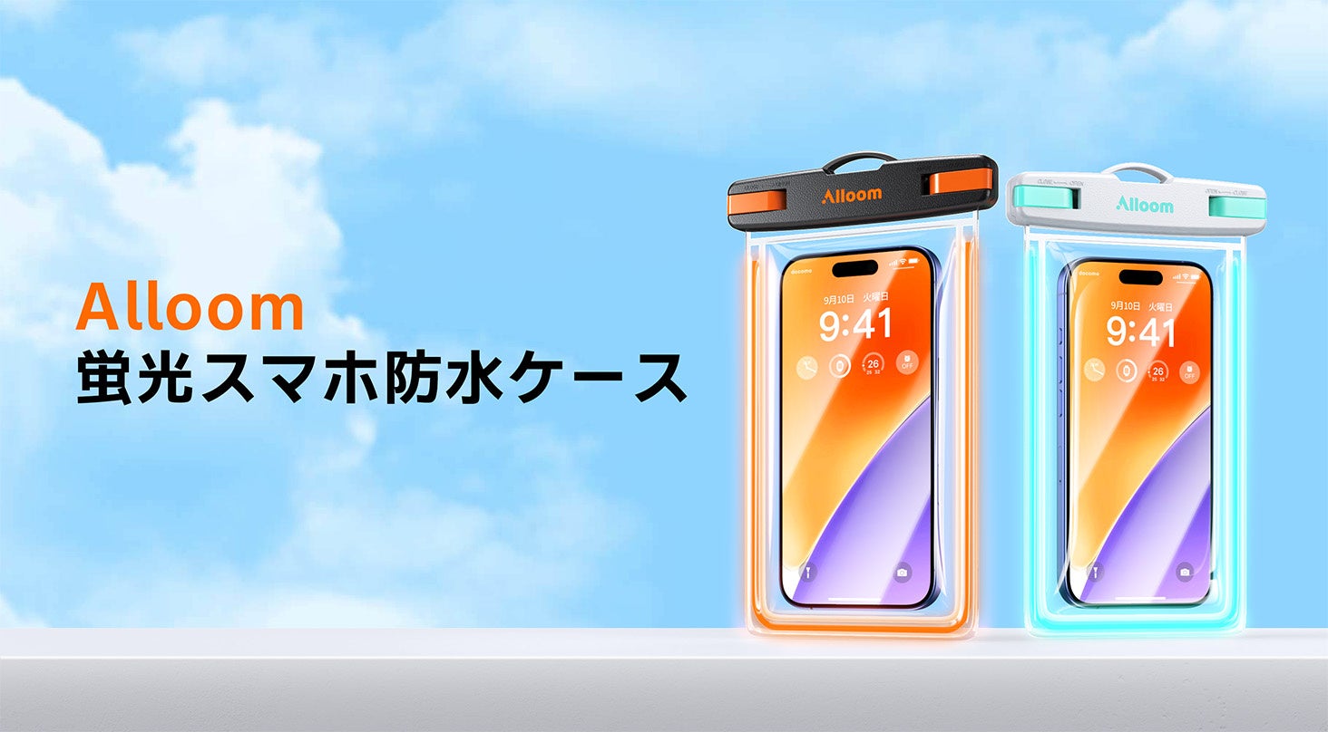 最大100時間・水深35mの防水性能、20時間光る蛍光フレームが新たな安心をもたらす。梅雨、アウトドア、マリンレジャーの必需品に、Alloomが革新的なスマホ防水ケースを発表。