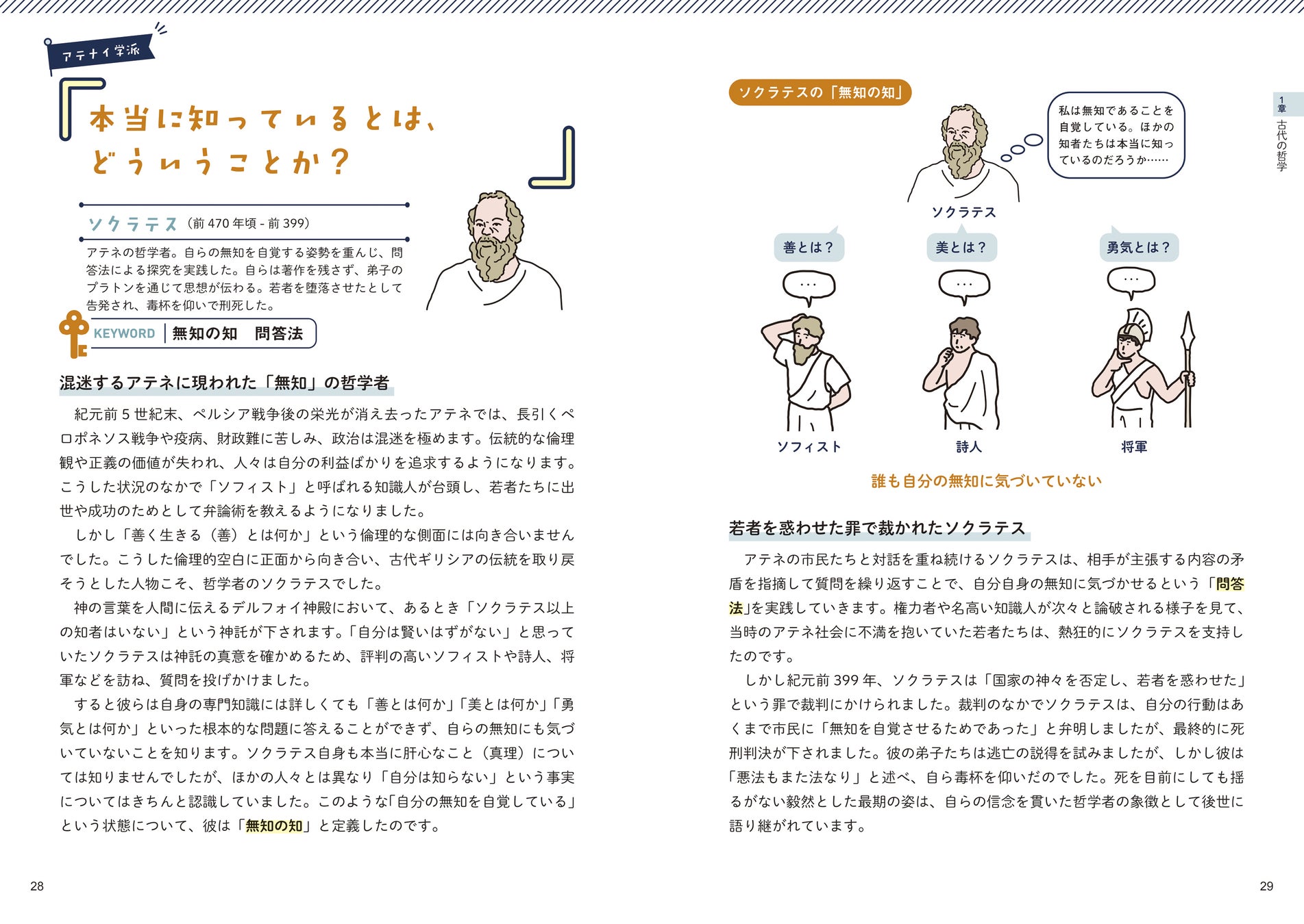 古代ギリシアの自然哲学から始まり、現代哲学まで、哲学史に残る巨星たちの思索を丁寧に辿ります。各章では、哲学者がどのような時代背景の中で悩み、その思想に至ったのかということを解説しています。