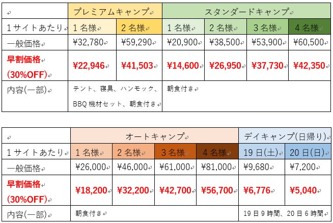 キャンプサイトチケット8月1日(木)販売開始!30%OFF早割期間は9月1日(日)まで!!