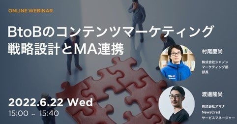株式会社シャノン(本社:東京都港区)は、コンテンツマーケティングの戦略設計とMA連携についてご紹介するウェビナーを、6月22日(水)に株式会社アマナと共同で開催いたします。