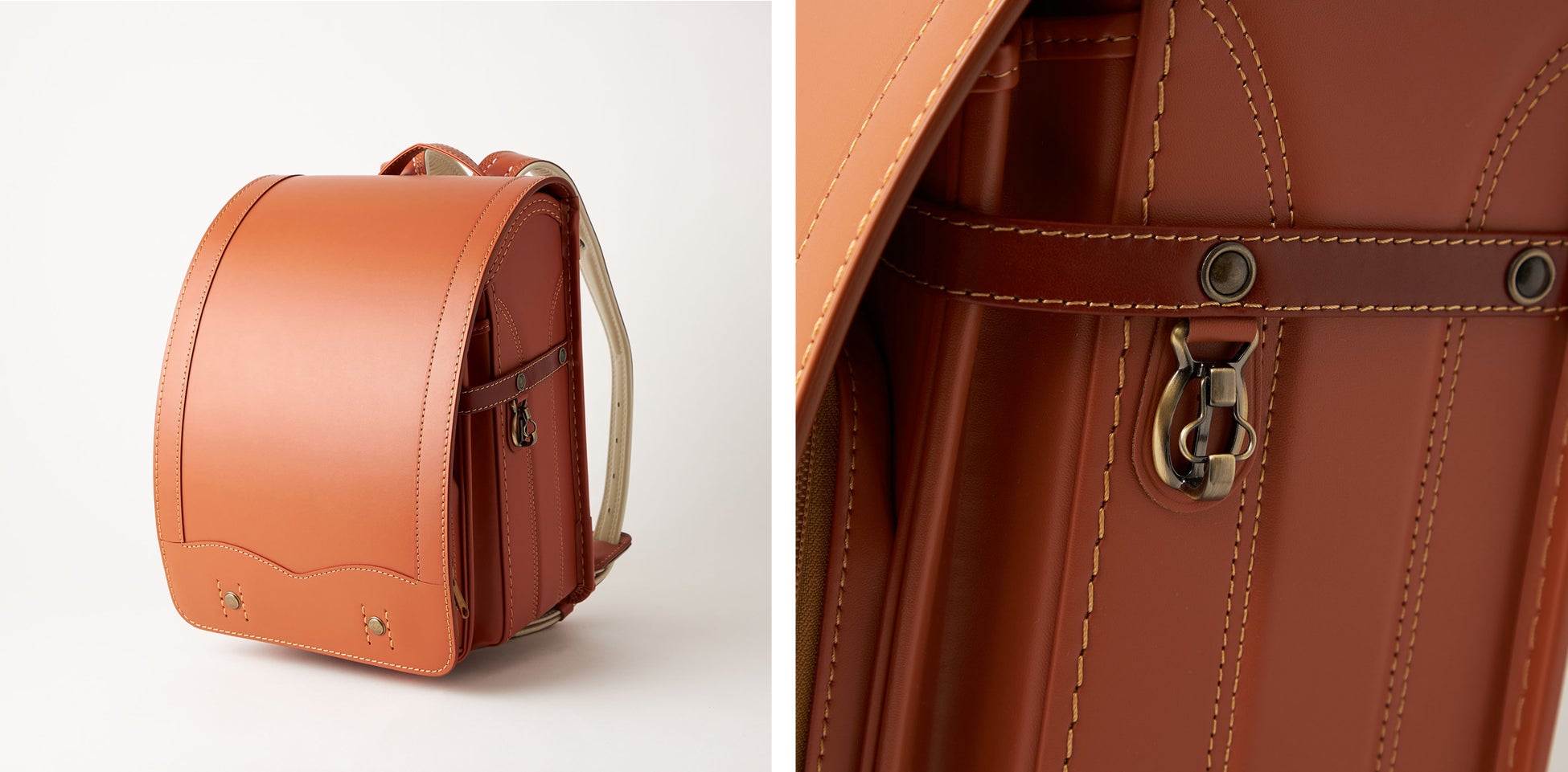 カブセ(フタ)部分のアクセントとなる鋲(びょう)は、オリジナルのデザインです。飽きのこない、かつ主張もしすぎない、ランドセルになじむよう存在感を抑えた品のある仕上がりが魅力です。