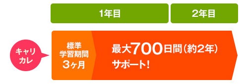 標準学習期間の3ヶ月で修了できなくても、キャリカレは受講開始から最長700日間まで無料サポート!