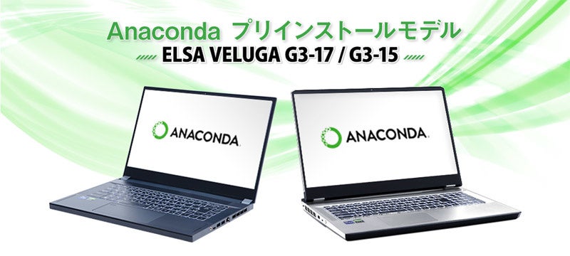 今回のキャンペーンでは、より多くのお客様にAnacondaをご利用いただくことを目的に、エルザジャパンのモバイルワークステーションシリーズVELUGAに、Anaconda Individual Editionをプリインストールしたモデルをご用意し、このモデルをキャンペーン特別価格にて販売させていただきます。これにより、本モデルをご購入いただいたお客様は、最低限必要となる作業のみで、Anacondaをご利用いただけるようになります。