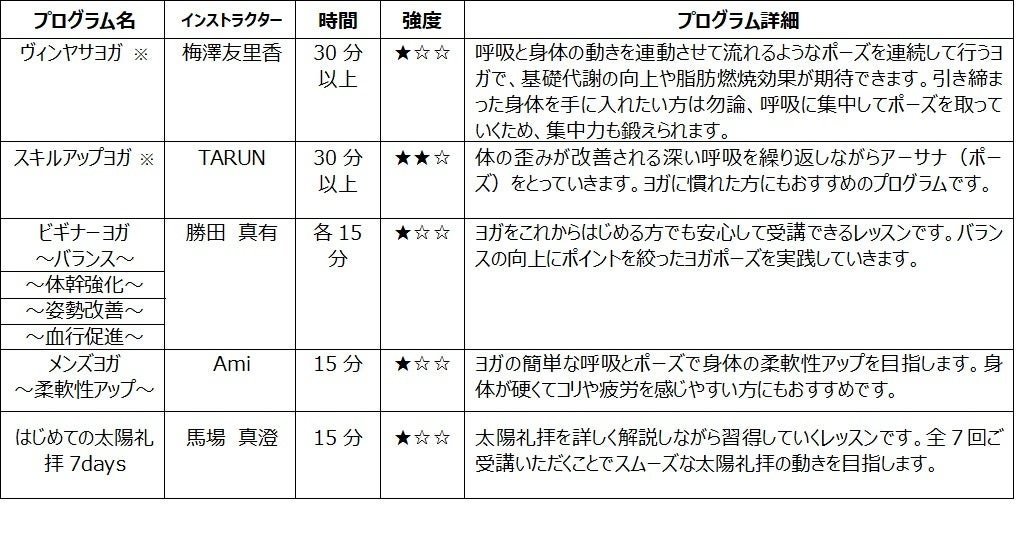 - その他の人気ヨガレッスン