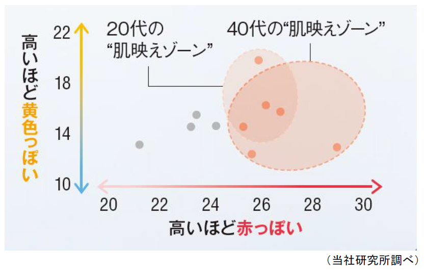 - エイジングケア研究30年超の実績で分析&設計。『ルージュ ルミアル』がこだわった“肌映え”。年齢によって変化する“肌映えゾーン”