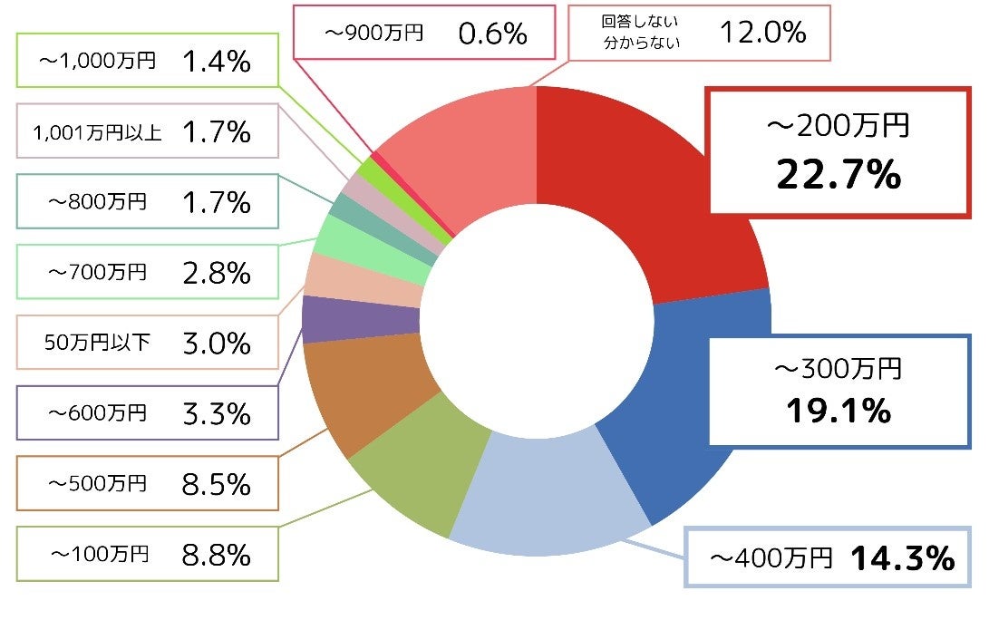 ローンを利用して購入した車の金額の中で一番多かったのは「100万円~200万円」となり、ボリュームゾーンは「200万円~400万円」という回答となりました。