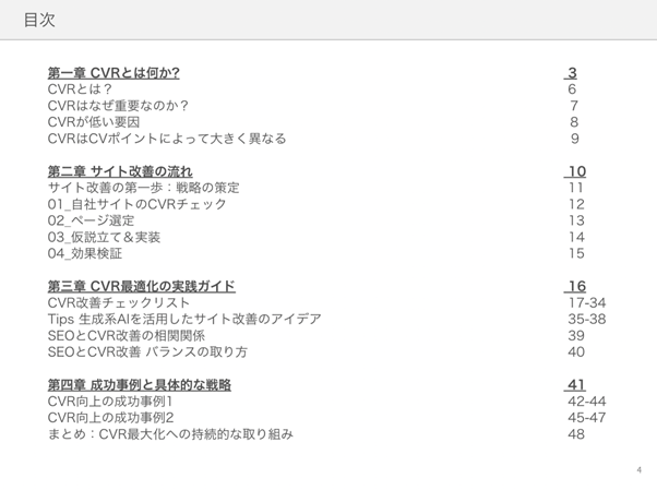 「CVRの課題を解決するためのサイト改善チェックシート」の内容