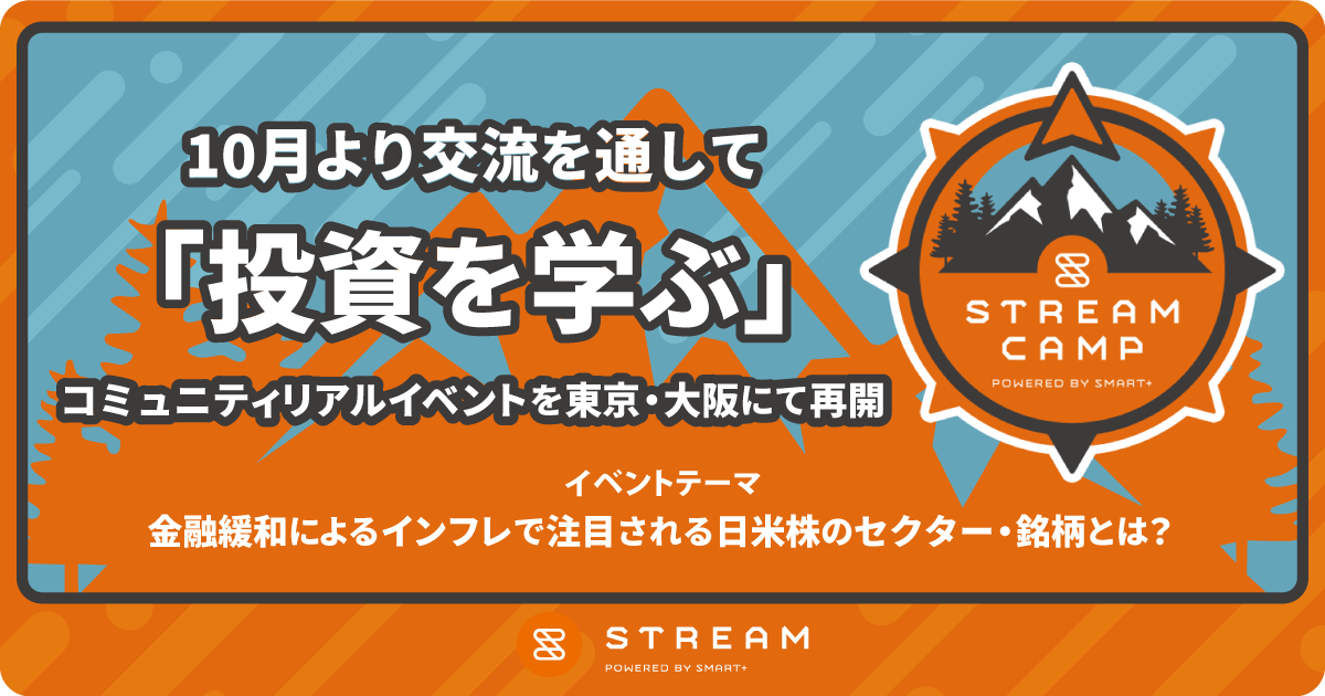 次世代金融インフラの提供を通して組込型金融を実現し、金融がもっと暮らしに寄り添う世の中を創るFinatext グループの株式会社スマートプラス(本社:東京都千代田区、代表取締役:小林 紀子、以下「当社」)は、2022年10月、コミュニティ型株取引アプリ『STREAM(ストリーム)』のコミュニティユーザー向けリアルイベント「STREAM CAMP(ストリームキャンプ)」を東京・大阪で再開します。