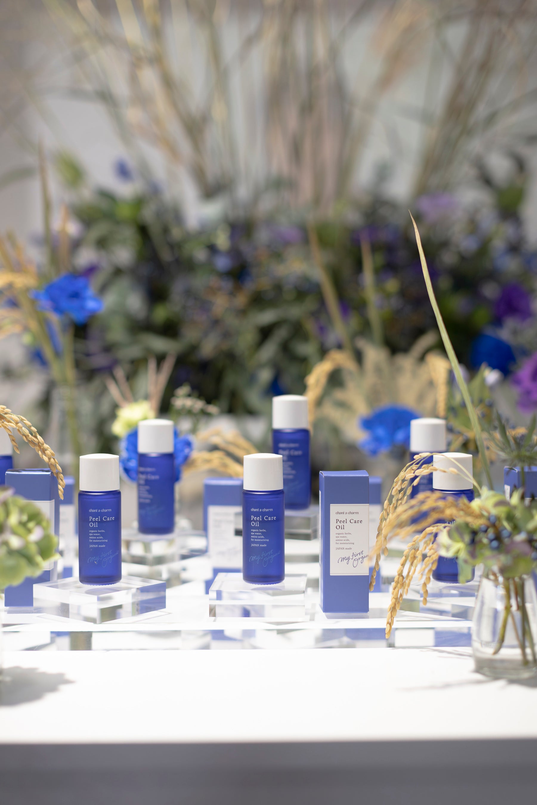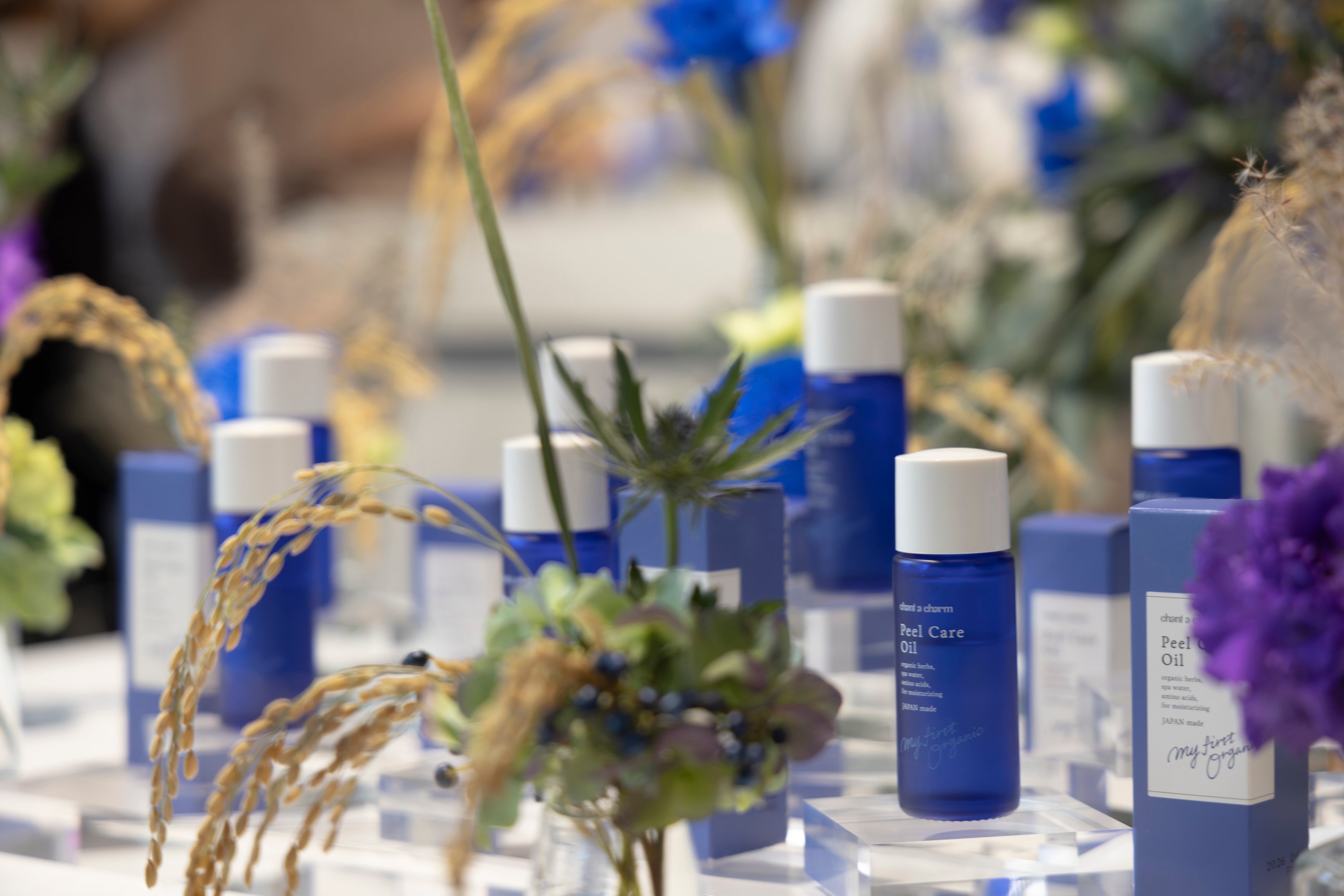 「ピールケアオイル」の容器の蓋は、水平リサイクル活動によって生まれたサステナブルなキャップであることをお伝えし、製品の中身も容器もサステナブルなチャントアチャームの魅力をご体験いただきました。