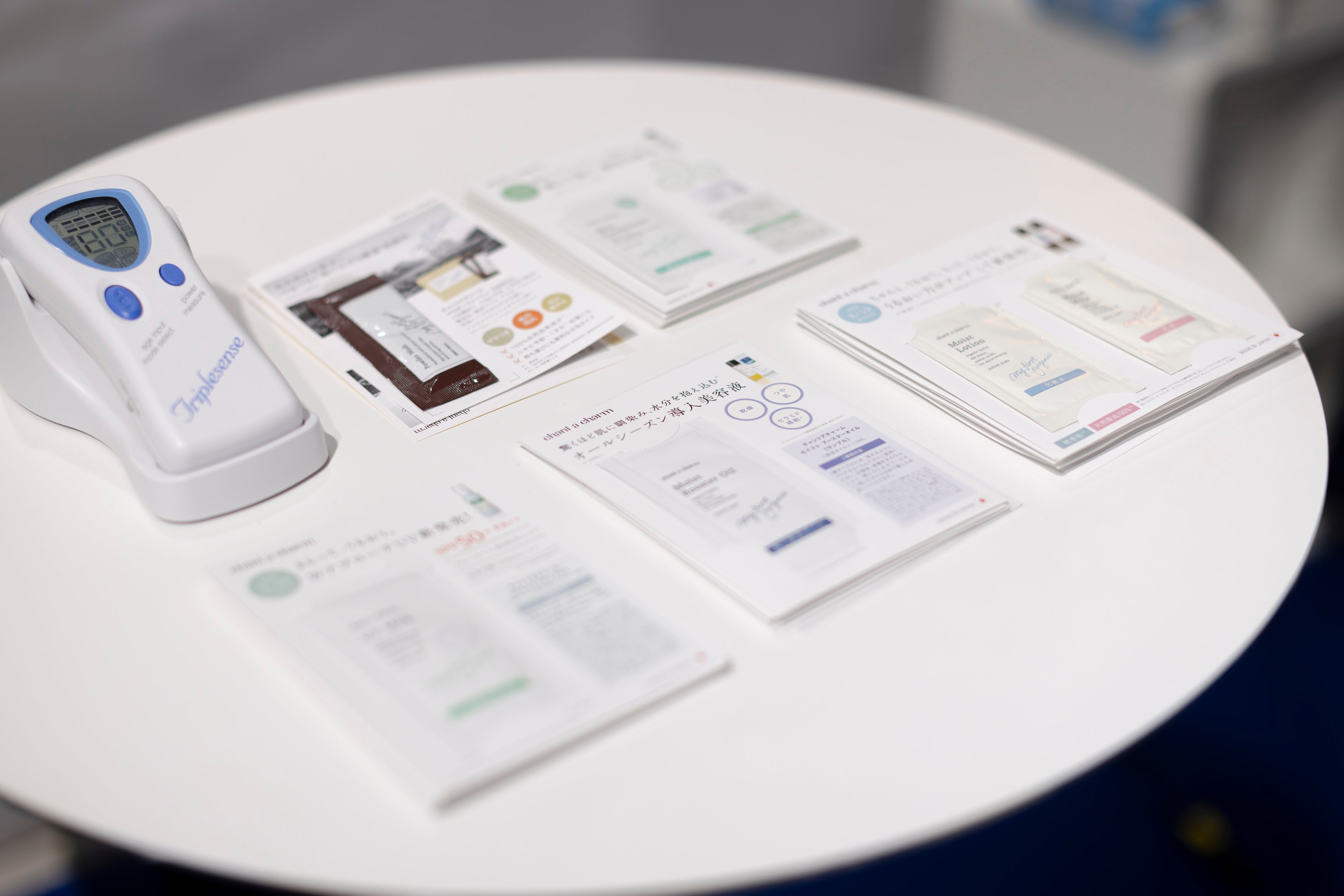 肌についてよく知るチャントアチャームスタッフが、参加者様のお肌の水分量などを測定、